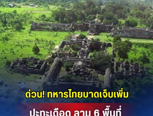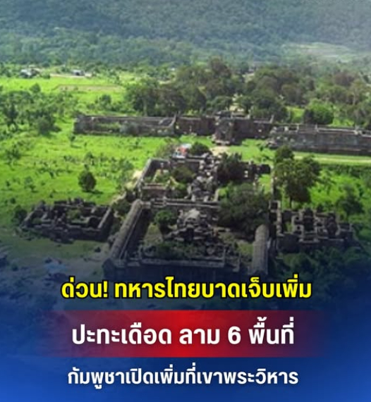 ล่าสุด เวลา 09.20 น. มีรายงานว่า เจ้าหน้าที่ทหารไทยได้บาดเจ็บ 2 นาย จากอาวุธยิงสนับสนุน ในพื้นที่บริเวณกลุ่มปราสาทตาเมือนธม จ.สุรินทร์