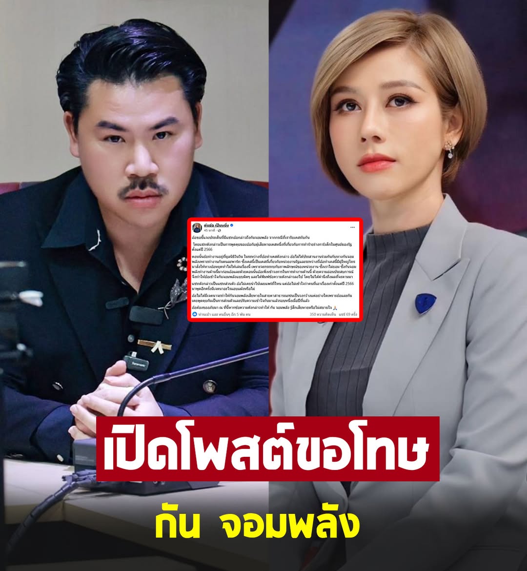 กระทั่งต่อมา ทางด้าน ต้นอ้อ ยังได้โพสต์ข้อความร่ายยาวขอโทษ กัน จอมพลัง ด้วยว่า “อ้อขอชี้แจงประเด็นที่มีแชทอ้อกล่าวถึงกันจอมพลัง