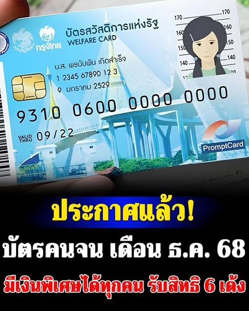 ข่าวเศรษฐกิจ ประกาศแล้ว!! บัตรคนจน เดือนธันวาคม 2568 มีเงินพิเศษ ได้ทุกคน รับสิทธิ 6 เด้ง 24 พ.ย. 2568 เวลา 19:39 น
