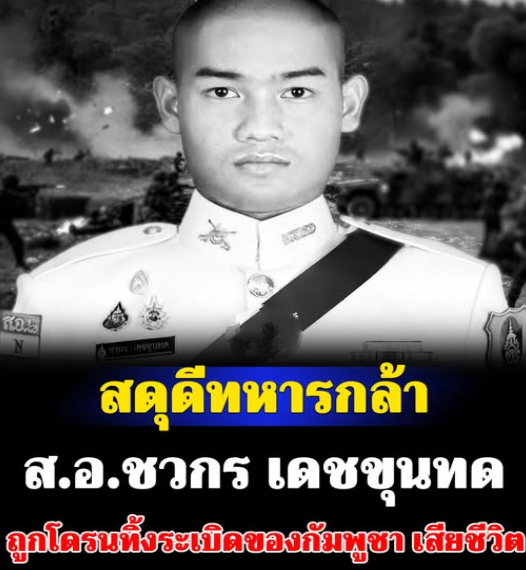 รายงานข่าวเศร้าวันนี้(9 ธ.ค. 68) ส.อ.ชวกร เดชขุนทด สังกัด ม.4 พัน.11 รอ. ถูกโดรนทิ้งระเบิดของกัมพูชา เสียชีวิตในฐานปฏิบัติการทางทหาร จ.ศรีสะเกษ ขอแสดงความเสียใจกับครอบครัวด้วยนะคะ