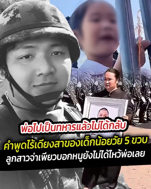 พ่อไปเป็นทหารแล้วไม่ได้กลับ คำพูดไร้เดียงสาของเด็กน้อยวัย 5 ขวบ ที่ฟังแล้วยิ่งปวดใจ ลูกสาวจ่าเพียวบอกหนูยังไม่ได้ไหว้พ่อเลย